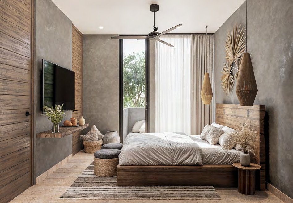 En el nivel superior, la privacidad es la protagonista. alberga una suite principal con vista a la selva y un espacio flexible pensado para la reconexión personal o con los seres queridos