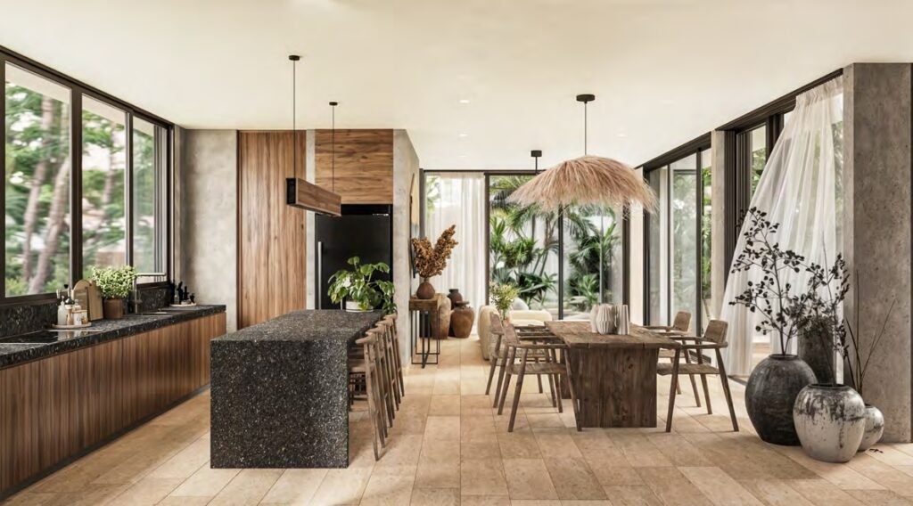 La casa raíz es un refugio contemporáneo totalmente inmerso en la selva de Tulum, cuyo diseño busca un equilibrio perfecto entre la funcionalidad y la calidez en cada rincón.