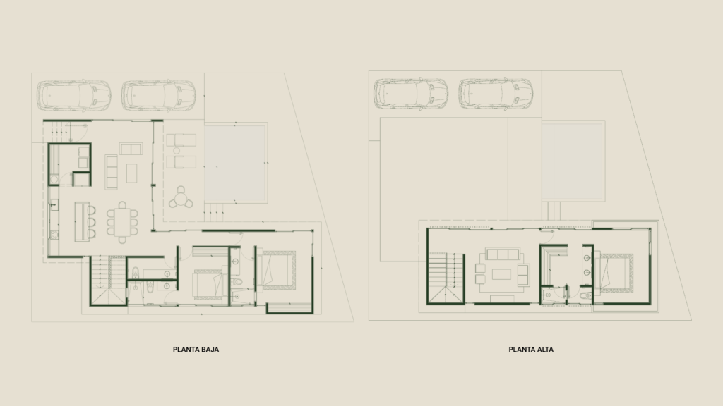 Este nivel está diseñado para abrirse al exterior a través de espacios conectados y luminosos que invitan a la convivencia o a disfrutar de la calma del entorno. Cuenta con dos recámaras independientes que fomentan el descanso inmediato y una terraza con alberca privada diseñada para fundirse con la vegetación nativa.
